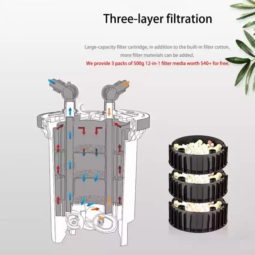 - Three Large Media Baskets: Provide ample space for various filter media, allowing customizable filtration setups.